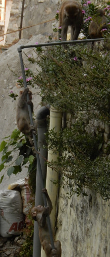 April is blossom season. Monkies conquering and massing hotel garden last morning before take off to the hills (Rishikesh)