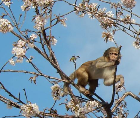 April is blossom season. Monkies conquering and massing hotel garden last morning before take off to the hills (Rishikesh)