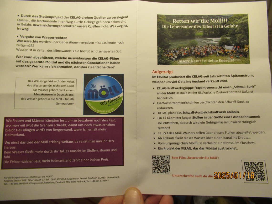 Stell dir vor es waeren Zweidrittel weniger Wasser im Fluss weil sie den in den Berg Stollen ableiten wollen